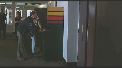 | A bunch of gambling machines are in the background of a couple of scenes in...