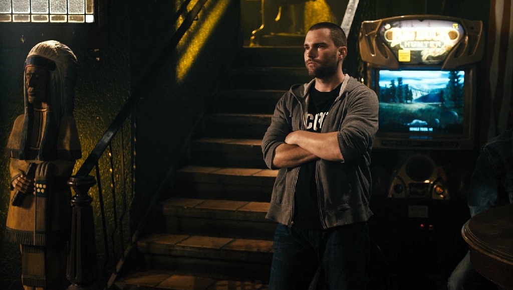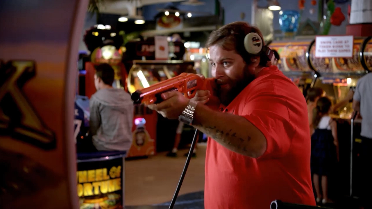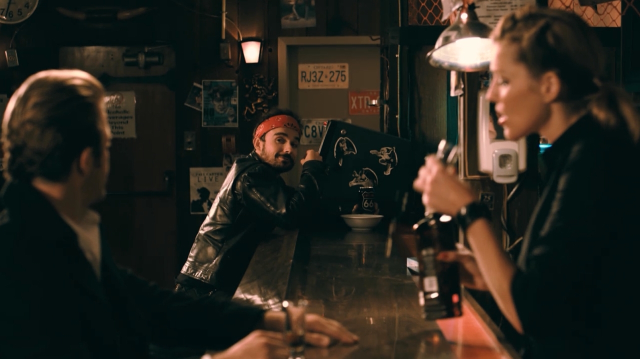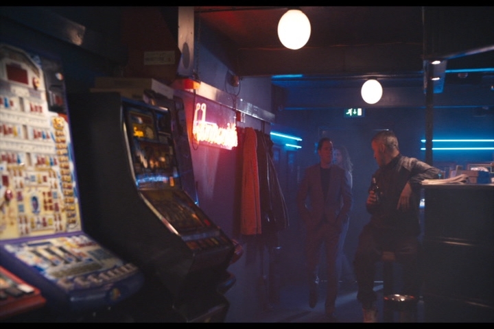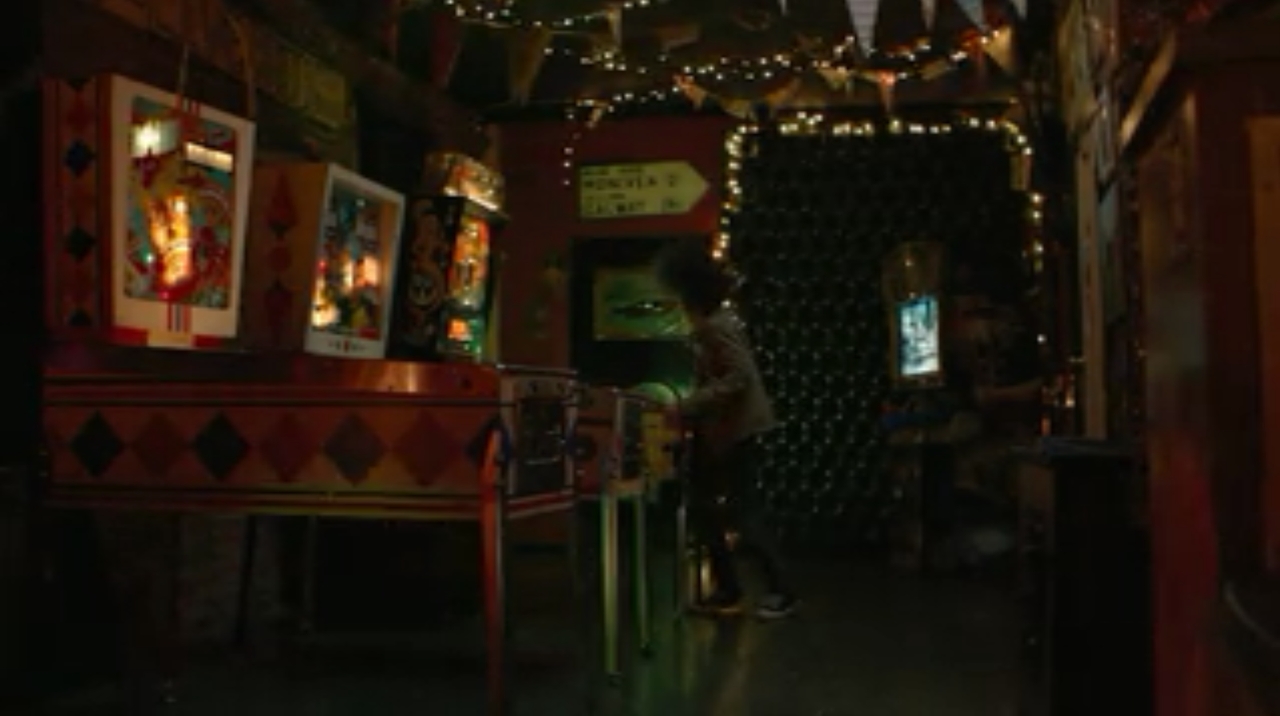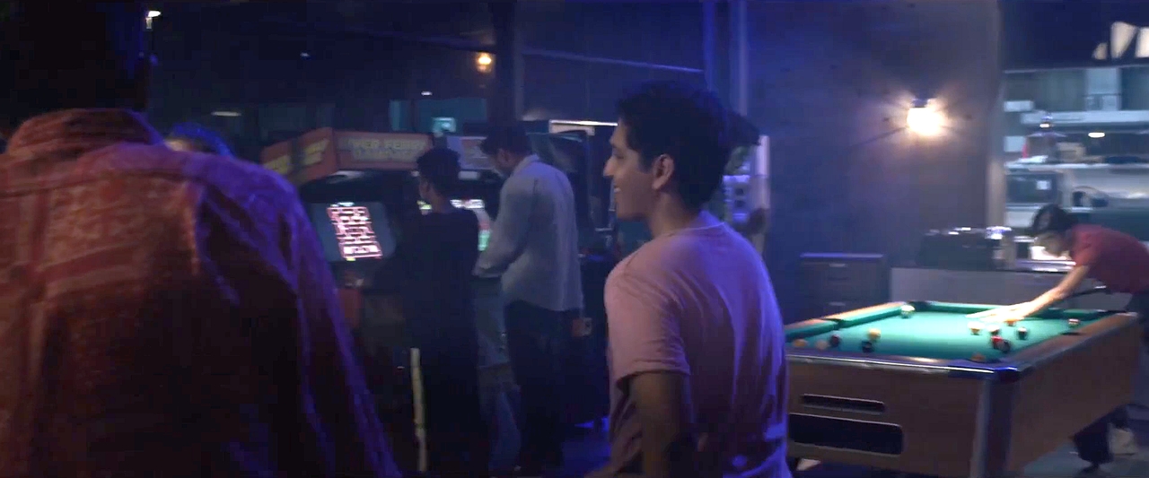 I can't tell for sure if it's arcade games in the background of this bar scene or not but I think it is...