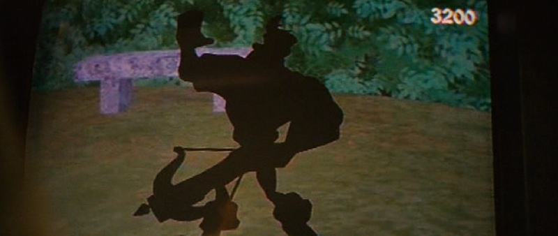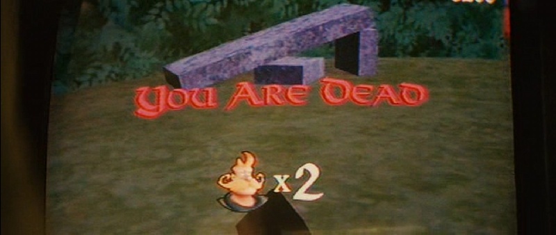 Bixtron: Roadside Prophets (USA 1992): Dude gets "fried" playing an arcade machine..... his last words were "monkey's attack". A road movie with John Cusack, David Carradine and others.